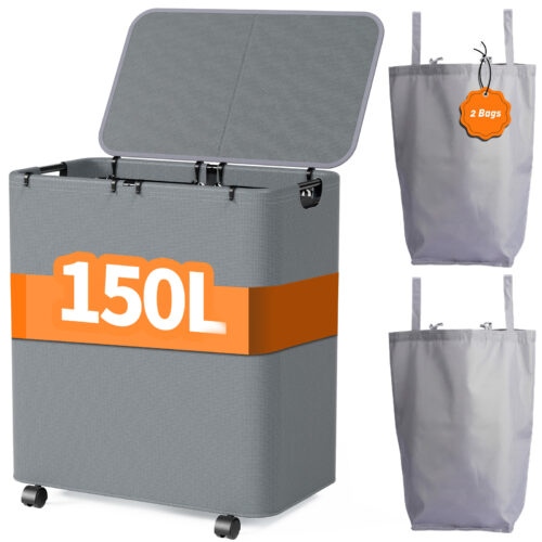 Yecaye 150L Laundry Hamper with Wheels, Gray