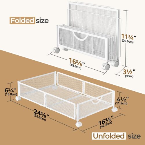- [Quality Metal Container] Skip the flimsy plastic or fabric under bed storage bins that tear easily. Our all-metal under bed storage containers feature a reinforced mesh design with smaller openings, providing superior strength. Plus, the entire frame is welded into one solid piece, ensuring sturdiness and durability—offering you long-lasting, reliable storage space