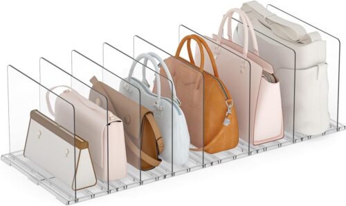 Yecaye Purse Organizer for Closet, Adjustable Closet Shelf Divider Rack, Clear