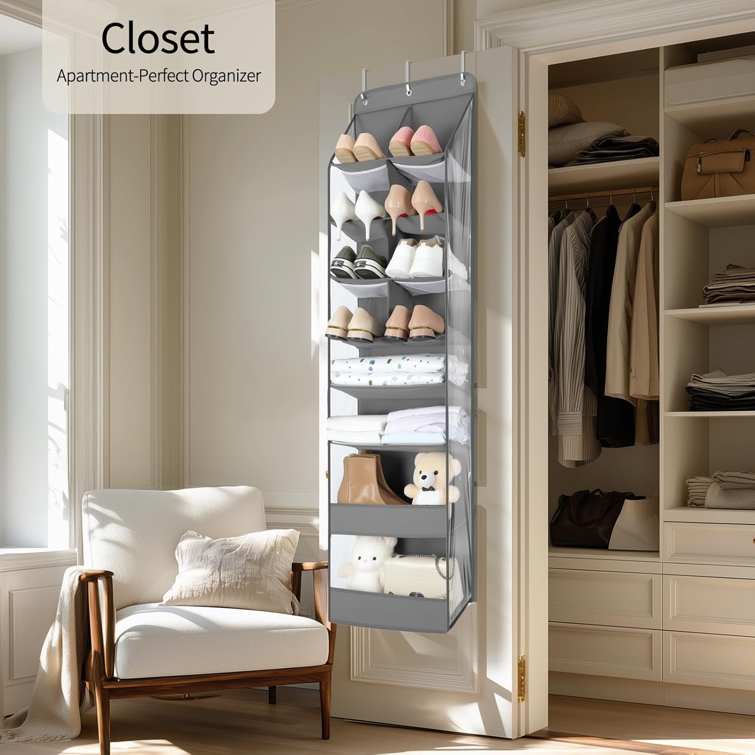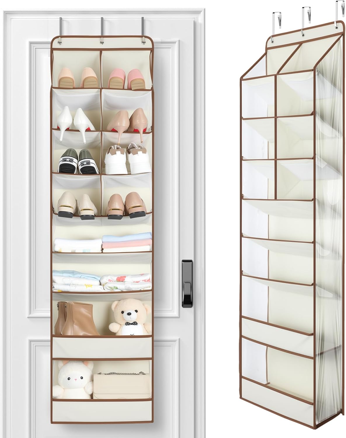 Safe and Premium Fabric: Crafted from double-layer premium cloth, breathable and odor-free. Features clear transparent PVC fabric on the sides, offering exceptional tear resistance and moisture-proof performance. Ideal for storage near doors in virtually any room of your home